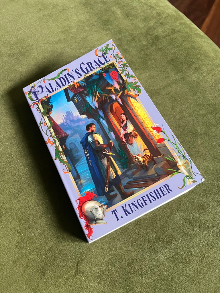 I’m in the middle of reading a couple different books. Let’s start in order – I bought Paladin’s Grace by T. Kingfisher while I was in England. I honestly was pulled in by the old-timey cover, and then the positive Goodreads rating. It’s a cozy fantasy centering around a perfumer and a paladin who knits socks – intriguing, I know! So far, I think it’s a nice read but I’m not in love with it. The struggle I often find with cozy fantasies is often the length. I understand world-building, because yes, it is important. That said, we don’t need to have heavily detailed descriptions, especially if it doesn’t help carry the story forward. It’s meant to be cozy for a reason.